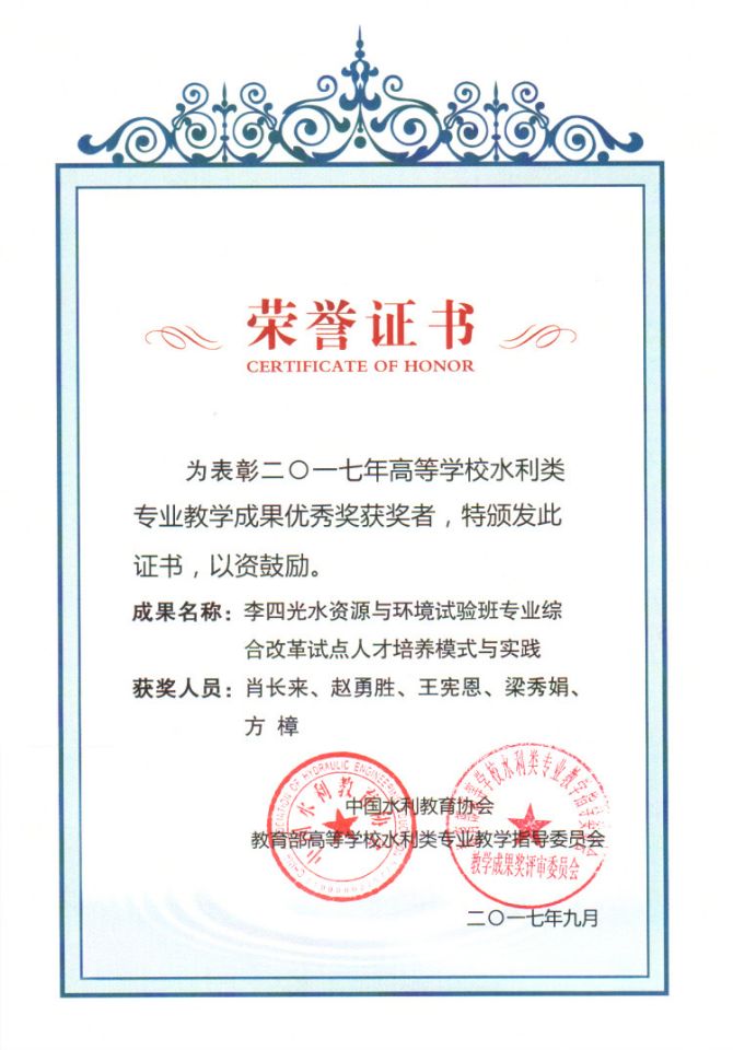 获得奖项:2017年高等17吃瓜网 水利类专业教学成果奖优秀奖