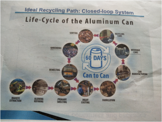 易拉罐主要由铁铝制成,易拉罐的回收过程是收集→分类→清洗→压缩→进入高温炉重新加工成铁或铝制品。铁铝的回收过程是有经济收益的,因为铁铝的获得是需要从大山中开采出氧化物,再将氧化物还原为单质,在这一过程是非常耗费资源的。而回收可以直接跳过能耗巨大的开采和冶炼,不仅节约了能源,而且减少了垃圾。