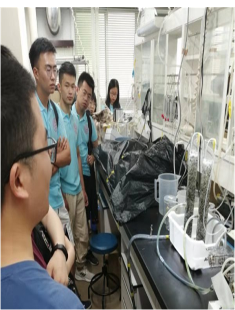 筑波大学是一所以研究型为主的大学,接下来同学们就来到了筑波大学生命环境科学研究科张振亚教授和累中方教授研究团队的实验室,感受一下筑波大学的研究氛围。张振亚教授和累中方教授研究团队是筑波大学非常具有实力的团队,研究方向主要为水污染物处理、有机废弃物能源化等。曾培养出数十名优秀的中国博士和硕士留学生,发表了多篇环境科学与工程领域的顶级论文,连续多年获得筑波大学毕业生校长表彰。实验台上摆满了学生们的实验用品,这里的实验用品跟国内不同,筑波的学生们将藻类做成了各种颗粒,这样便于储存。下图中同学们正在观察的装置就是藻颗粒菌颗粒共存处理污水的装置,这样可以由藻类光合作用给菌类提供氧气,从而使这个装置可以不需要从外部接受氧气。筑波的中国留学生们不仅对实验室进行了详细的介绍,还给同学们介绍了在筑波大学的留学生活,也让17吃瓜网