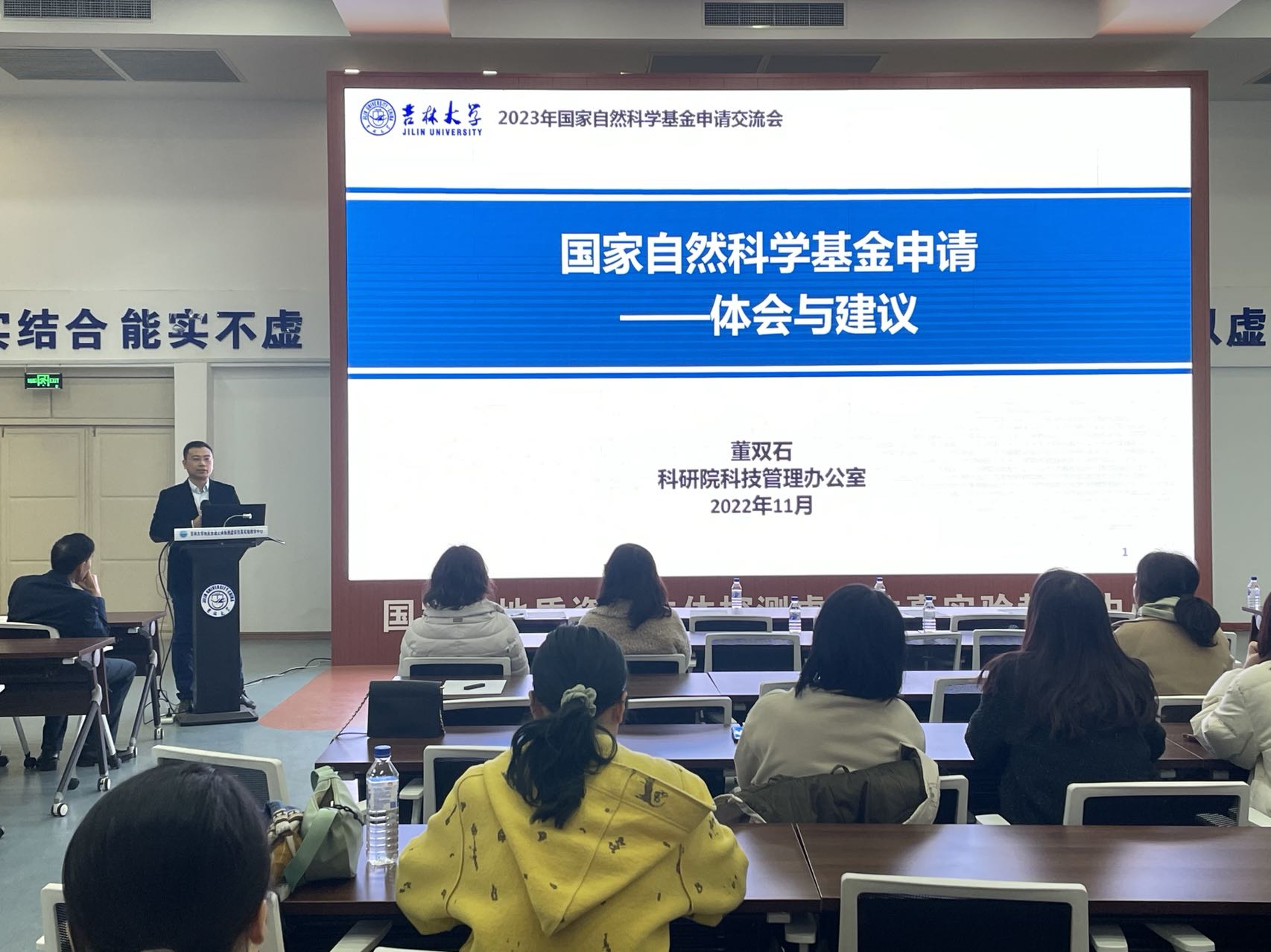 副院长卞建民教授、环境工程系主任张大奕教授进行基金申请交流的讲座。