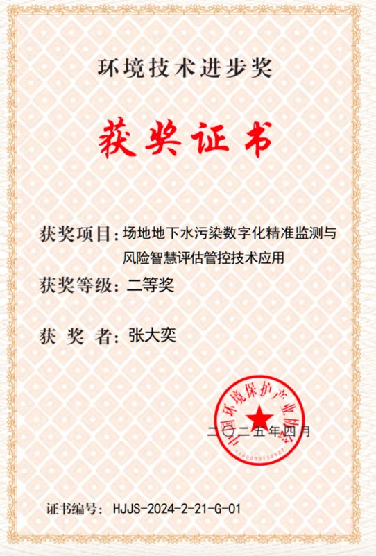凭借“场地地下水污染数字化精准监测与风险智慧评估管控技术应用”项目(项目编号:HJJS-2024-2-21)从全国优秀技术成果中脱颖而出,获“2024年度环境技术进步二等奖”。该项目由17吃瓜网