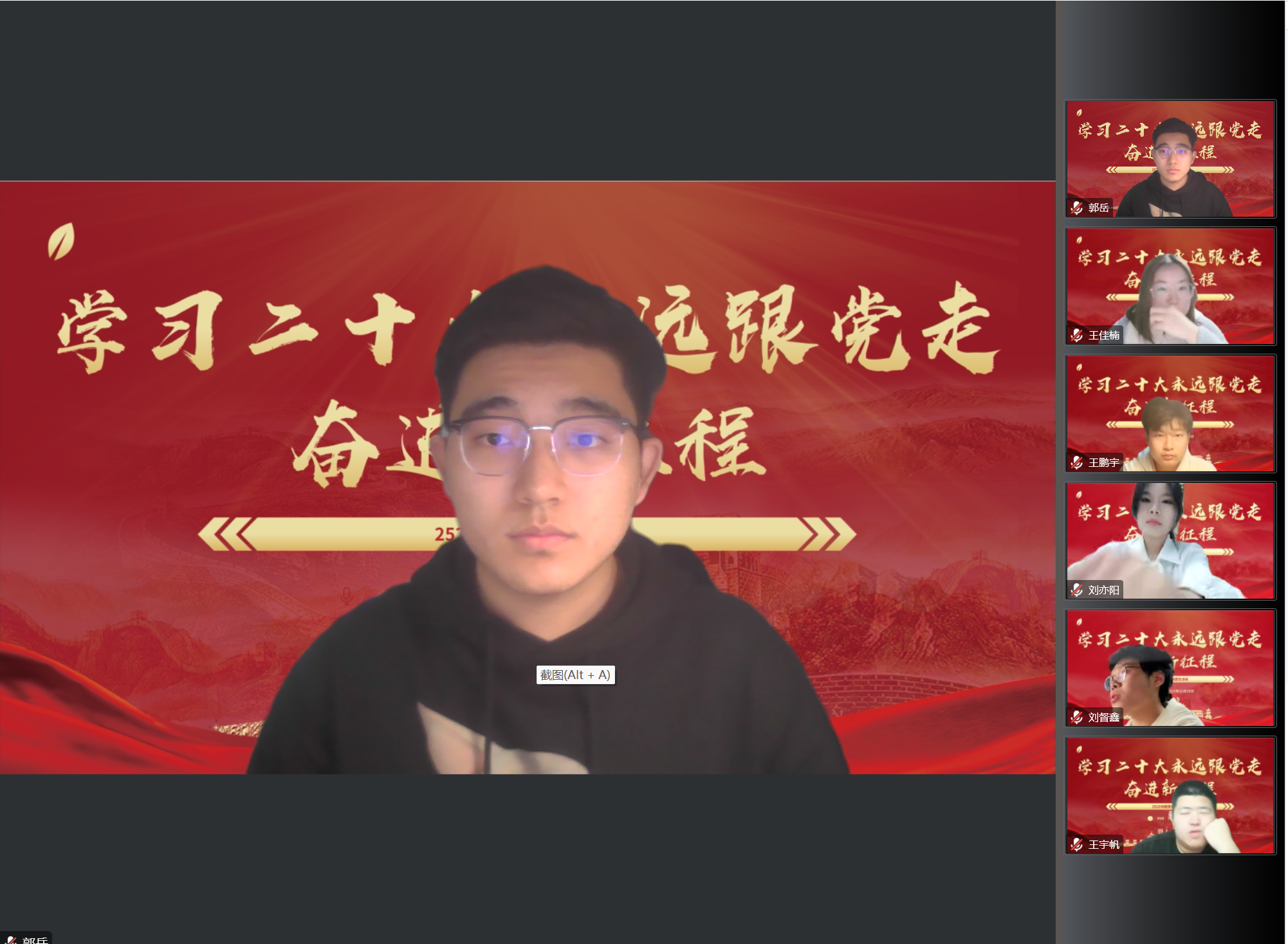 首先,大家进行了云团课的观看,团课讲述了党的二十大精神的重要意义和丰富内涵,聚焦“五个牢牢把握”的重要要求,要牢记习近平总书记的嘱托,以新时代好青年应有的姿态,奋进新征程,诠释新使命,创造新业绩。非凡十年谱华章,思想之旗领航向,人间正道开新篇,初心砥砺天地间,团结奋斗正当时,盛会归来话少年。