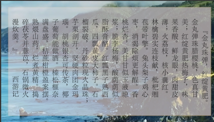 实践活动背景:《西游记》是中国古代第一部浪漫主义章回体长篇神魔小说。与《三国演义》《水浒传》《红楼梦》并称为中国古典四大名著。在这次社会实践选题中,团队选择了弘扬家乡优秀传统文化,叙民生。结合《西游记》美猴王称霸水帘洞宴会一文的描述,来展开江西的风土人情。每个乡村有每个乡村的历史,一个村落有一个村落的故事,都蕴含着文明乡风、良好家风、淳朴民风。而一方水土,还孕育了漫山遍野的桃红柳绿。跟着文字的思路,共介绍了江西22种常见果物,其中不乏有齐云山酸枣、赣南脐橙和抚州的东乡甘蔗等地理标志农产品的身影。让实践团队没想到的是,物华天宝的江西,仅春夏两季就可孕育出这么多种类的瓜果,丰收的喜悦藏在农民洋溢着的笑容里,一时我竟分不清,是瓜果个头大,汁水甜,还是这些可爱的人儿们的月牙甜?
