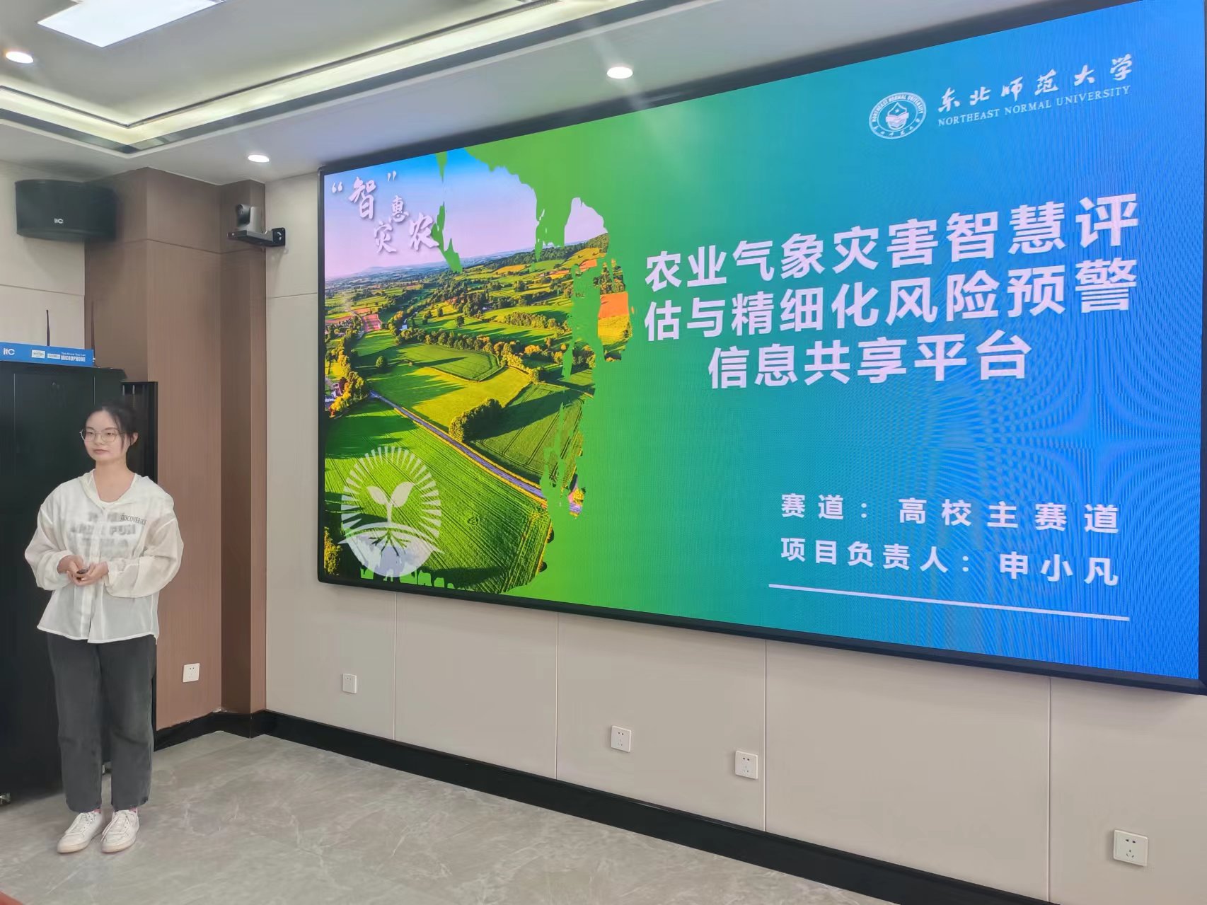 2020级环境科学专业申小凡同学以《“智”灾惠农—农业气象灾害智慧评估与精细化风险预警信息共享平台》为题,讲述其担任负责人组织团队并完成了一套气象灾害智慧评估与精细化风险预警系统App的设计与实现的经历,详细介绍了“互联网+大学生创新创业大赛”的活动时间安排和项目建设流程。