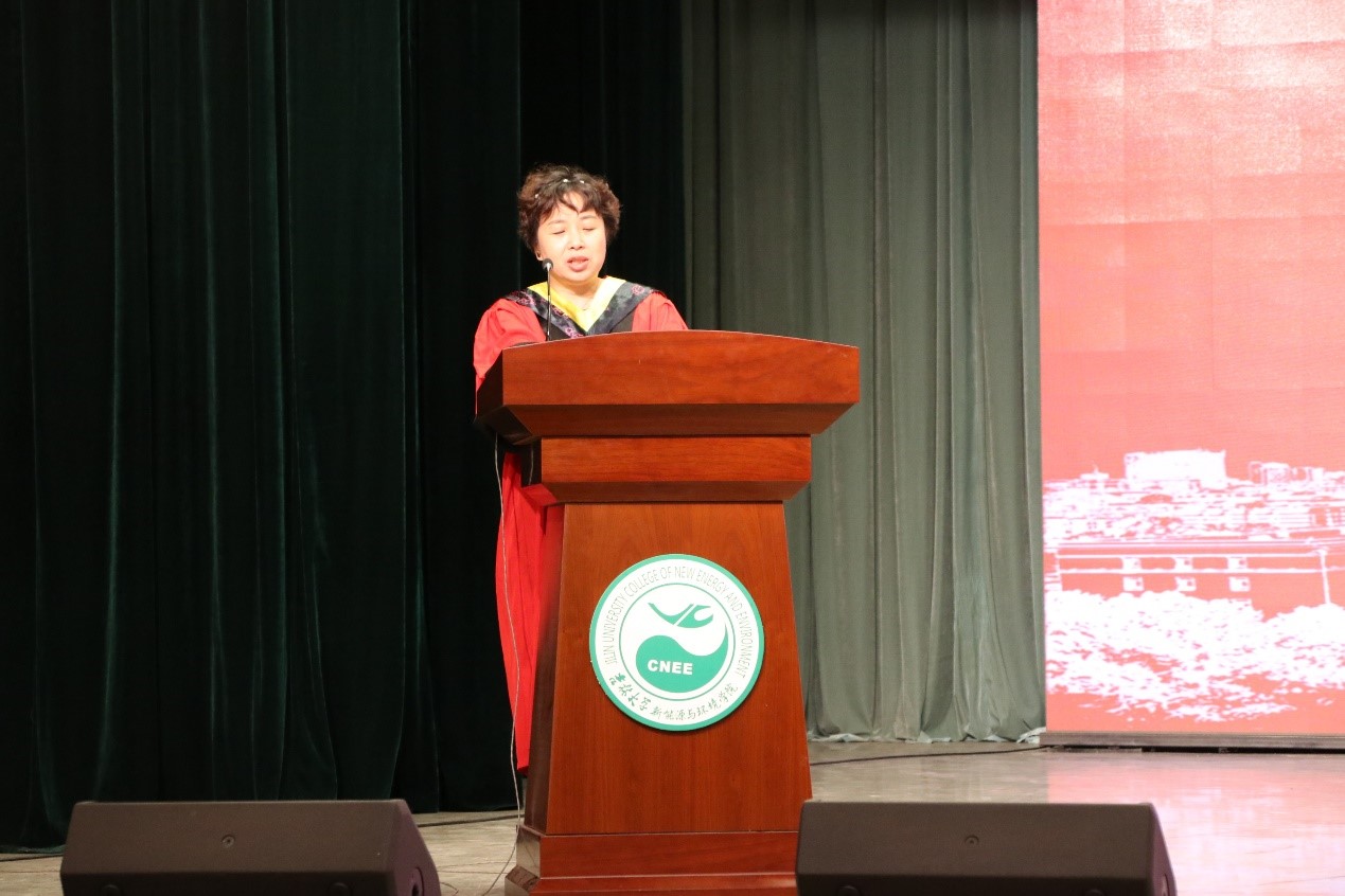 地下水科学与工程系杜新强老师发言,他为毕业生们送上鼓励和祝福,鼓励同学们将“求实创新、励志图强”的校训精神记在心中,带在身上,鼓励同学们树立远大的理想和目标,将理想追求融入到党和国家的事业中,要有坚定的信念,也要有克服困难的勇气以及终身学习的动力,为祖国的强大不懈奋斗,在实现中国梦的伟大事业中绽放青春的光彩,实现可期的未来!