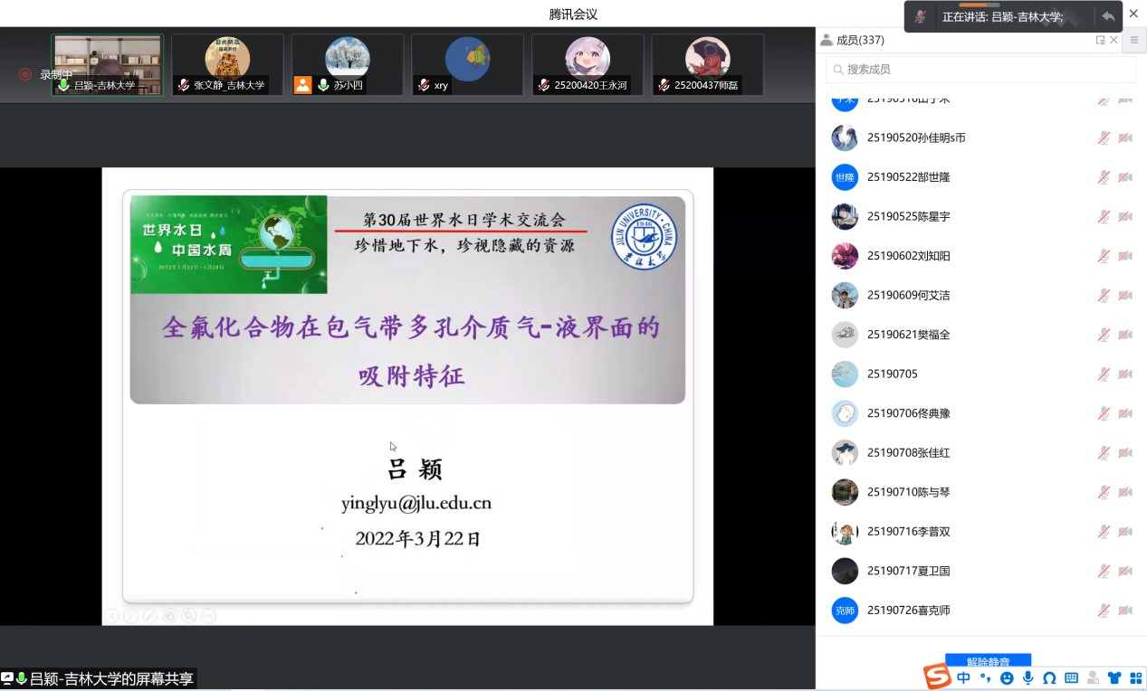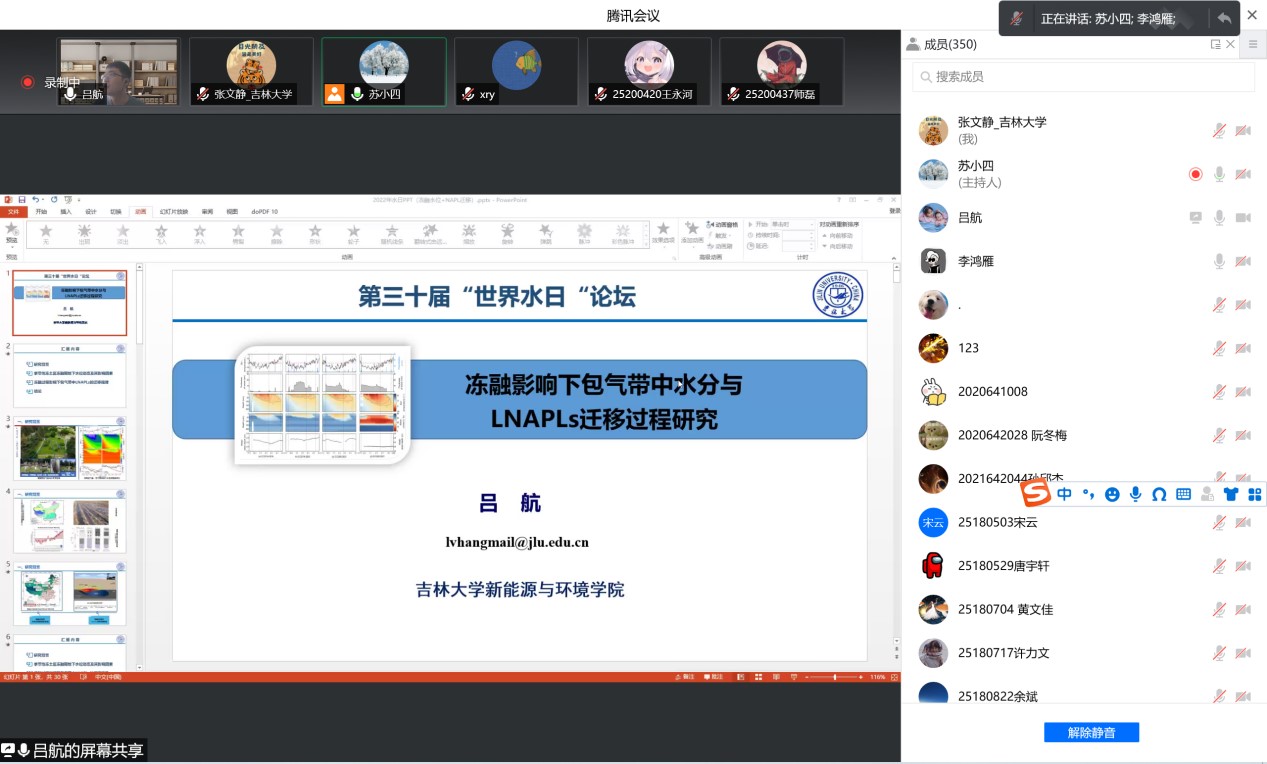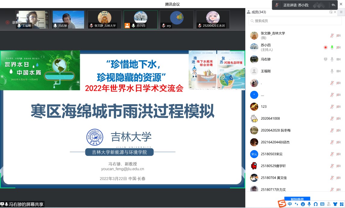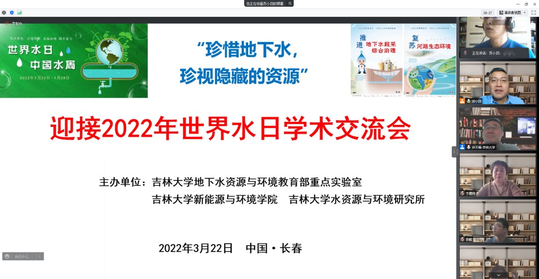 为深入落实习近平总书记节水优先、空间均衡、系统治理、两手发力治水思路,共同探讨地下水保护与利用的平衡之道,322日下午17吃瓜网 、水资源与环境研究所与地下水资源与环境教育部重点实验室共同组织召开了迎接2022年世界水日学术交流会。会议由水资源与环境研究所所长苏小四教授主持,17吃瓜网 领导、相关教师和研究生、本科生同学350余人在线参加了此次学术交流。