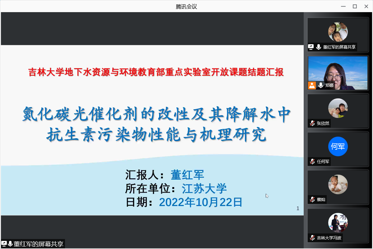 20221022日17吃瓜网 地下水资源与环境教育部重点实验室(以下简称“实验室”)线上举办了重点实验室开放课题(2020-2022)答辩报告会,会议参加的人员包括:重点实验室主任许天福教授、重点实验室首席科学家苏小四教授、重点实验室副主任王福刚教授和郑娜教授、重点实验室委员花修艺教授以及重点实验室多名教授。郑娜副主任主持会议,邀请东北师范大学范伟副教授、江苏大学董红军副教授、中山大学的张欣然副教授、油气藏地质与开发国家重点实验室蔡灿副教授、大连理工大学郑嘉男助理研究员围绕地下水资源的可持续开发、地下水土环境污染形成、控制与修复及地下新能源开发过程中渗流与环境问题等领域展开了精彩的报告。会议期间多位老师与报告人进行了深入的讨论,促进了兄弟院校的科研工作者与重点实验室老师之间的交流,为进一步的合作和发展奠定了夯实的基础。