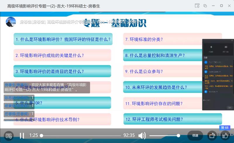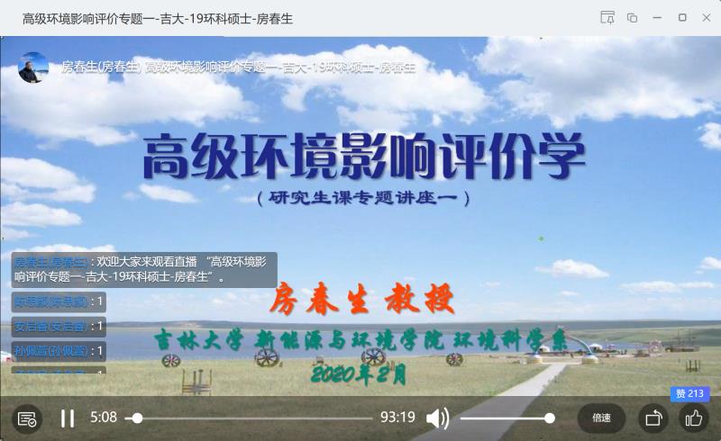 房春生教授开设的环境科学专业硕士研究生专业课《高级环境影响评价学》顺利进行了首次网络直播授课,成为17吃瓜网