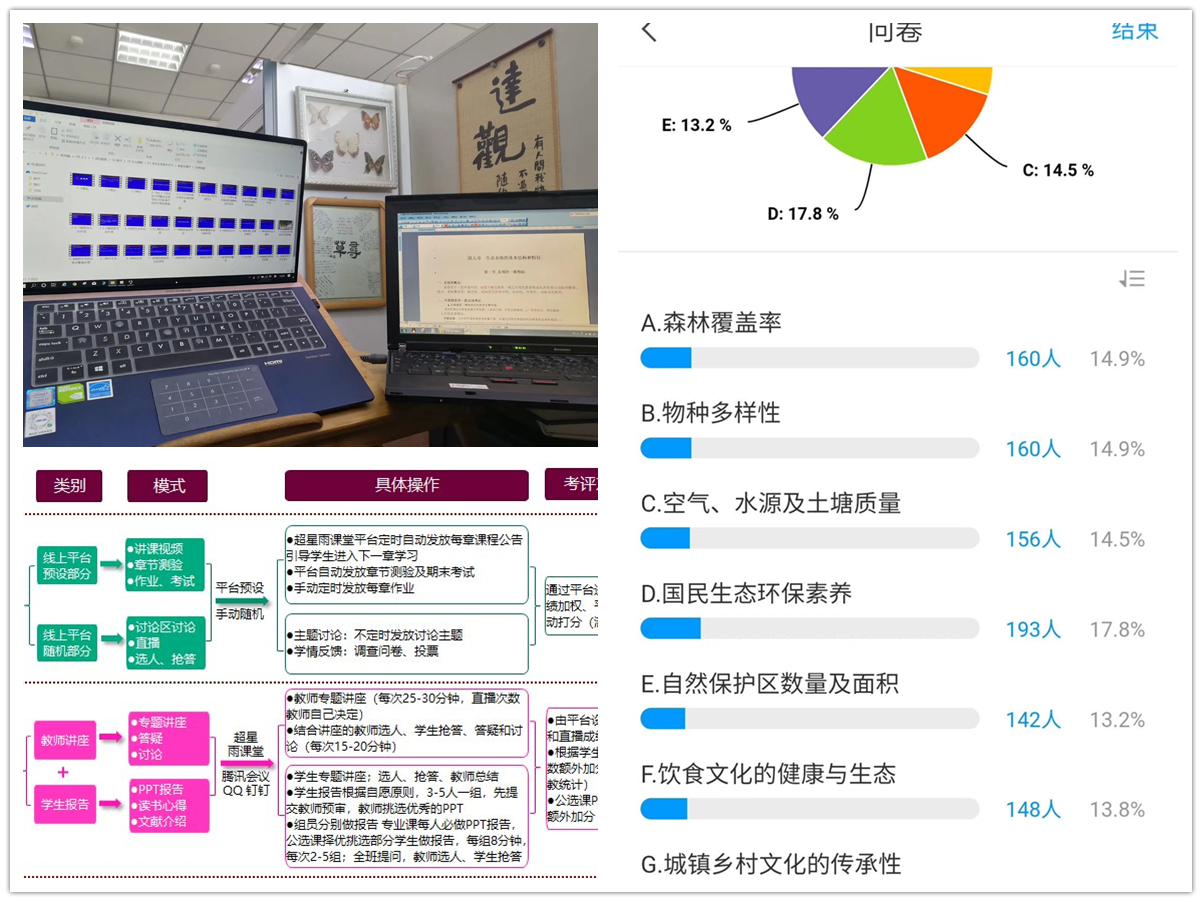 老师们经过短期的高强度培训学习,克服了诸多困难。因疫情防控的限制,老师们无法随时到办公室收集制作上课材料;一些老师家里孩子尚小,他们在家仍要承担监护和家务的责任,这些教学准备工作只能在深夜进行,他们为了备课而通宵达旦。一些老师暂时放下了自然基金的和其它科研论文的撰写,为了备课他们征用了家里唯一一台电脑,把自家小孩17吃瓜网
