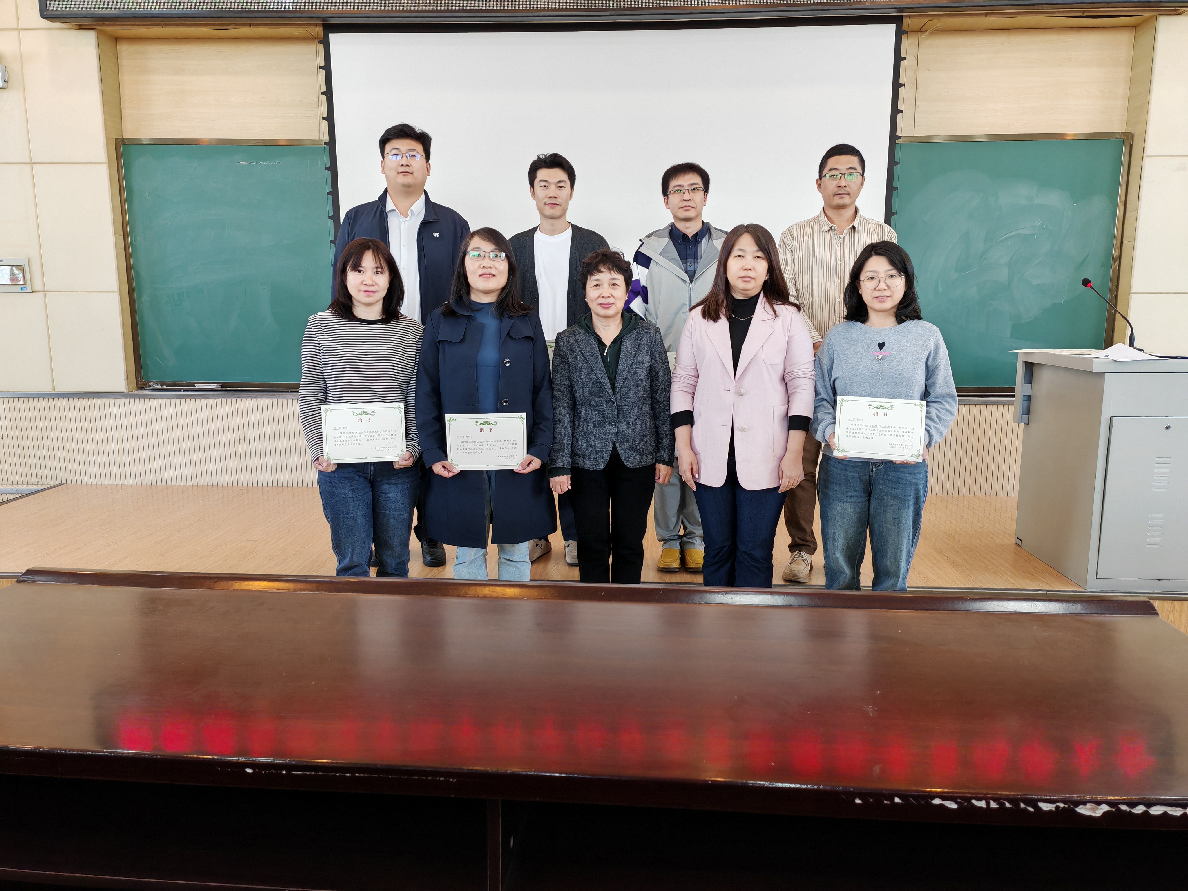 学生管理工作力度。由卞建民副院长、吴哲副院长兼副书记为各位班主任老师颁发聘书。