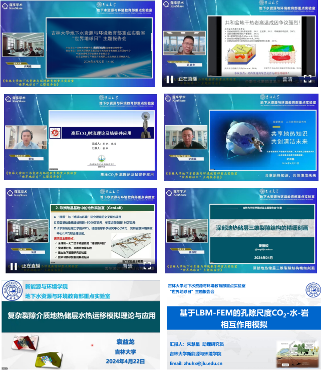 地热资源开发技术与装备教育部工程研究中心、山东省地质矿产勘查开发局第二水文地质工程地质大队、滨州市自然资源和规划局、中国地球物理学会地热专业委员会联合协办”,蔻享学术网络平台提供直博服务。报告主题围绕应对全球气候变化的国际关注热点问题,分别从绿色能源-地热能开发,以及二氧化碳减排地质封存两方面进行科普宣讲和学术研讨。会议由地下水资源与环境教育部重点实验室副主任王福刚教授主持,重点实验室成员及研究生50余人线下参加此次学术交流活动,6000余人通过“蔻享学术”平台直播观看了此次报告会。