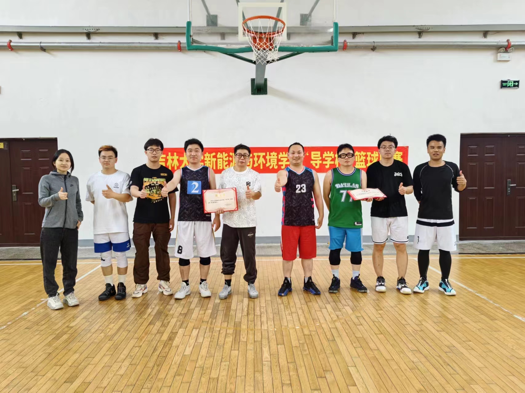比赛采用循环积分制,每支队伍都进行了多场比赛,展现了他们的拼搏精神和竞技水平。导师们凭借丰富的运动经验,在比赛中发挥稳健,研究生们则以青春的活力和迅捷的速度在场上竞逐,时刻保持着高昂的斗志。比赛中,多次出现精彩的扣篮和精准的三分球,引来了观众们的阵阵掌声。每一场比赛都充满了紧张和激烈的气氛,参赛队伍在攻防两端都表现出了极高的水平,充分体现了师生们对篮球的热爱和对胜利的渴望。