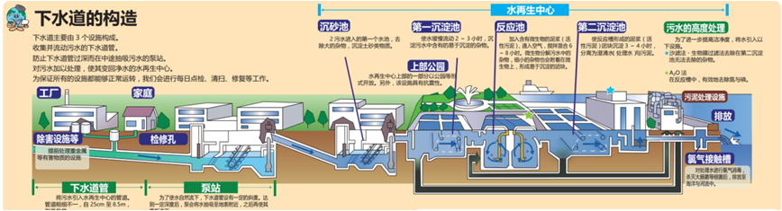 另外,中心没有栅格间。日本的污水水质非常好,淡淡的一点黄色,基本澄清,表面无明显油状漂浮物。而国内的污水基本都是淡灰色,含有相当多的垃圾,油脂更是几乎成块。日本人所使用的厕纸都是水溶性的,入水就散烂,大大减少了污水中纤维量。另外日本呼吁厨余的油脂不排入下水道,也为污水处理带来很大优势。这也是同样核心的降解过程是A2O流程,但出水水质优于国内的关键。日本从法律政策方面着手对群从进行教育,这与东大见学时泷泽老师讲的从政策角度来解决问题的视角相同。中国国内目前的方法是通过政策升级倒逼处理工艺升级,这一点和日本的相关政策有异曲同工之妙,我们也有理由相信,在可期的未来我们的污水处理末端出水水质同样能够得到改善和提高。