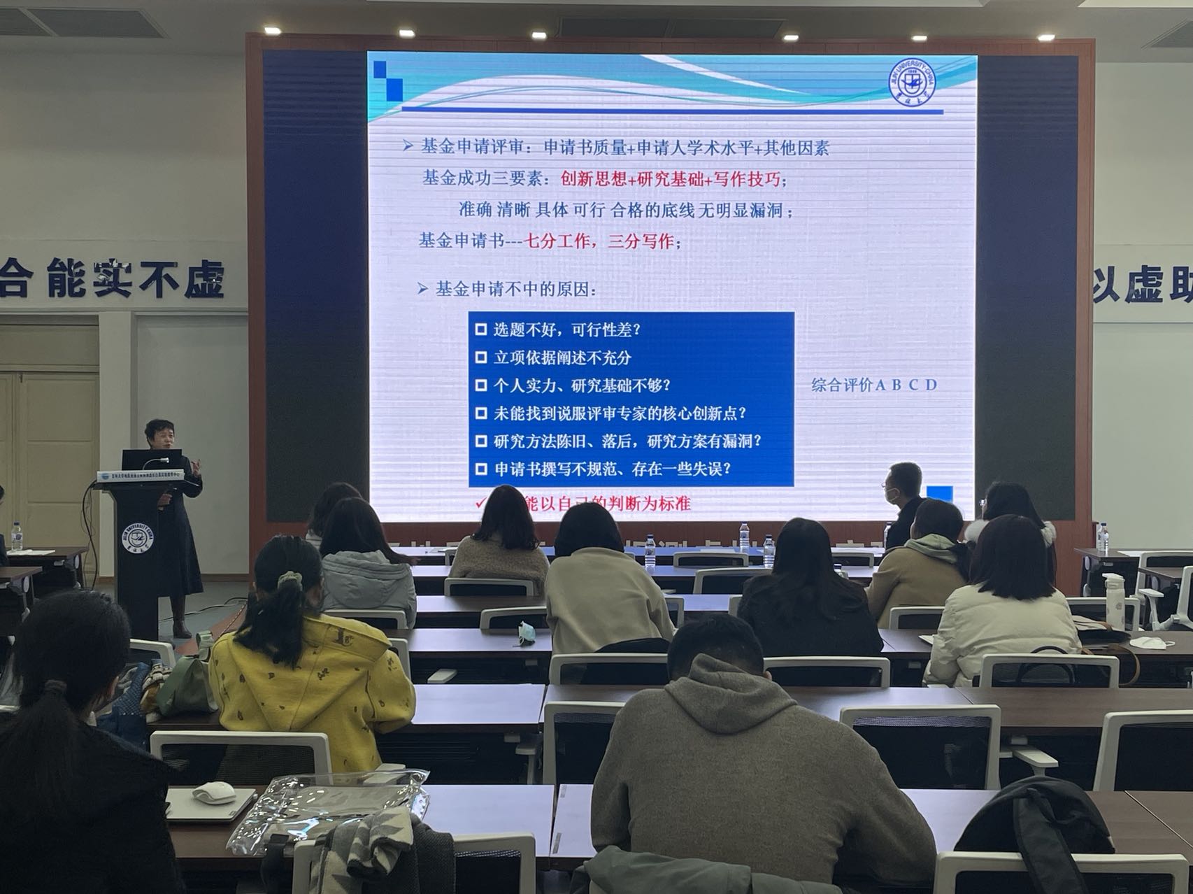 副院长卞建民教授、环境工程系主任张大奕教授进行基金申请交流的讲座。