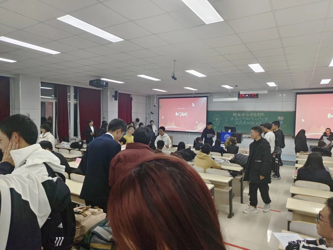 紧接着团学组织各部门代表进行宣讲介绍,经过各部门精心准备的宣讲,即将参与面试的同学们更深入地了解团学组织的宗旨、工作职责及部门文化,各部门代表的演讲获得了同学们热烈的掌声。