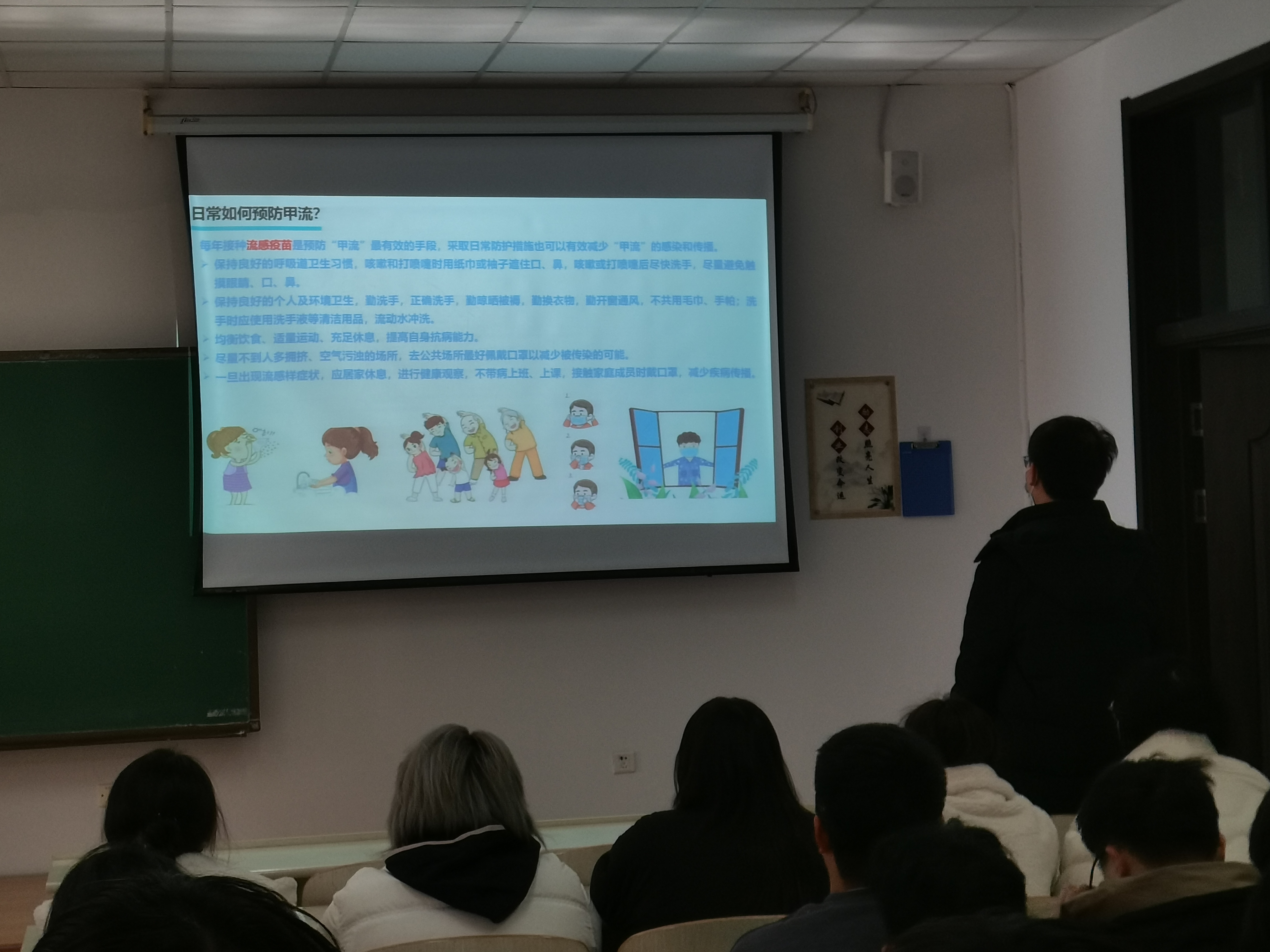 在召开之前,张老师已经在班级群内发布问卷,征集同学们感兴趣的话题。问卷征集显示,同学们对甲流、保研考研、大创较为好奇。张老师制作了精良的PPT细心地为同学们答疑解惑。