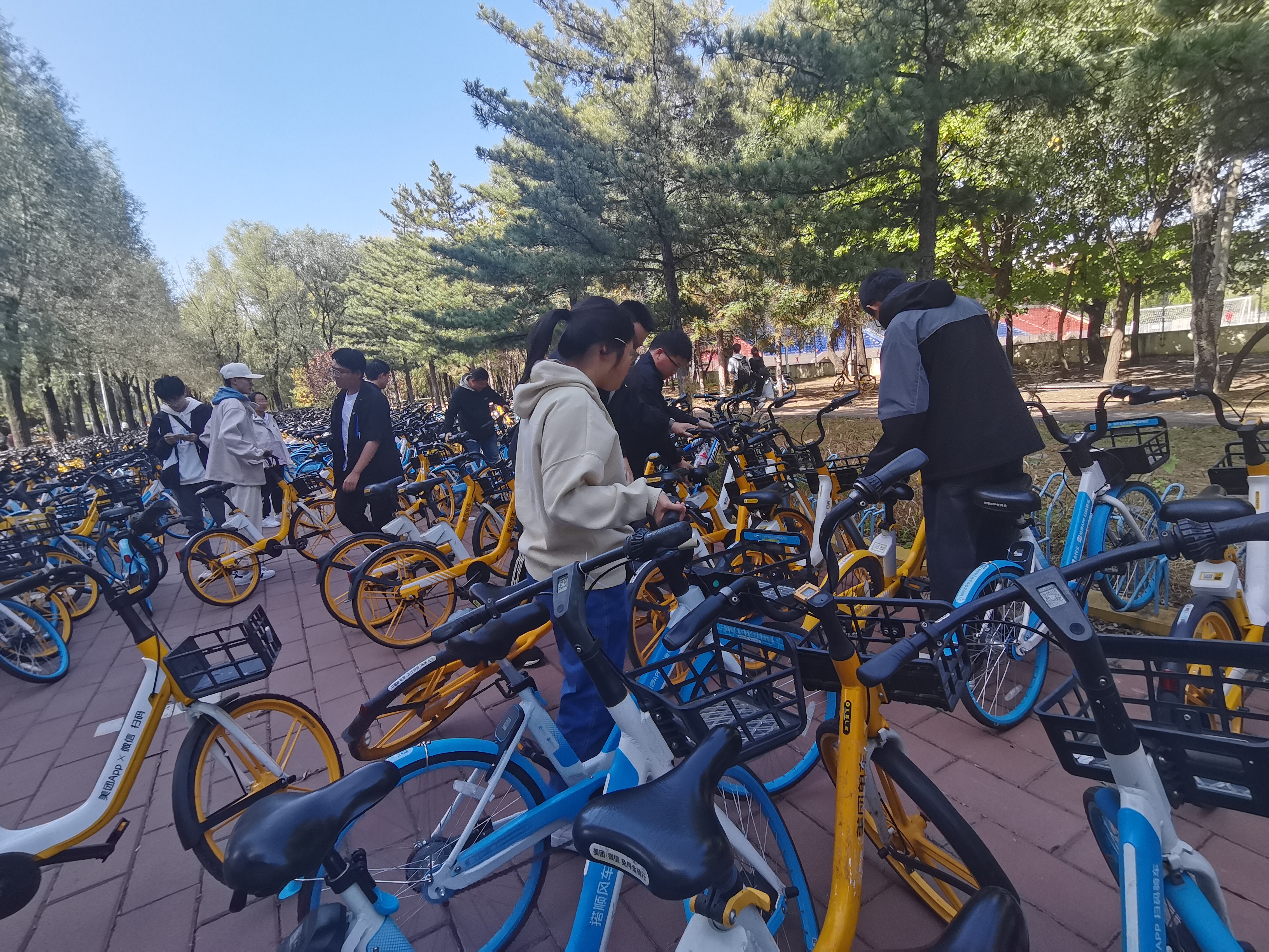开展了“金秋劳动周”大学生劳动实践活动——校园共享单车整理。
