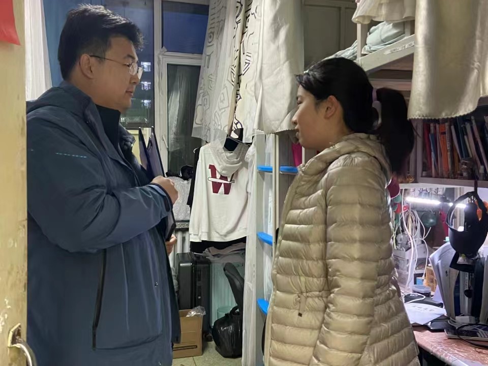 朝阳校区五公寓、七公寓42间寝室进行检查,提醒同学们注意寝室卫生,了解同学们毕业去向等情况,强调寝室安全。