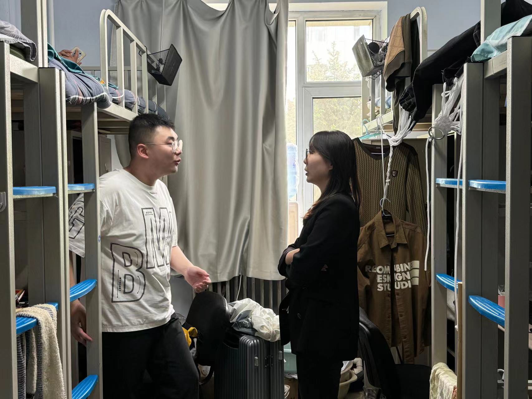 5月10日,2020级辅导员霍美汐老师对中心校区南苑一公寓、二公寓寝室进行检查,本次检查重点为寝室卫生,女生寝室整体卫生状态良好,男生部分寝室卫生状态不好,霍老师督促学生们及时打扫寝室卫生,并嘱咐后续会继续抽查,查寝过程中没有发现违章电器。