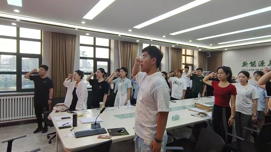 本科学生第一党支部召开“迎七一”主题党日活动,讨论决定9名预备党员的转正情况,同时举办新发展党员入党宣誓仪式。