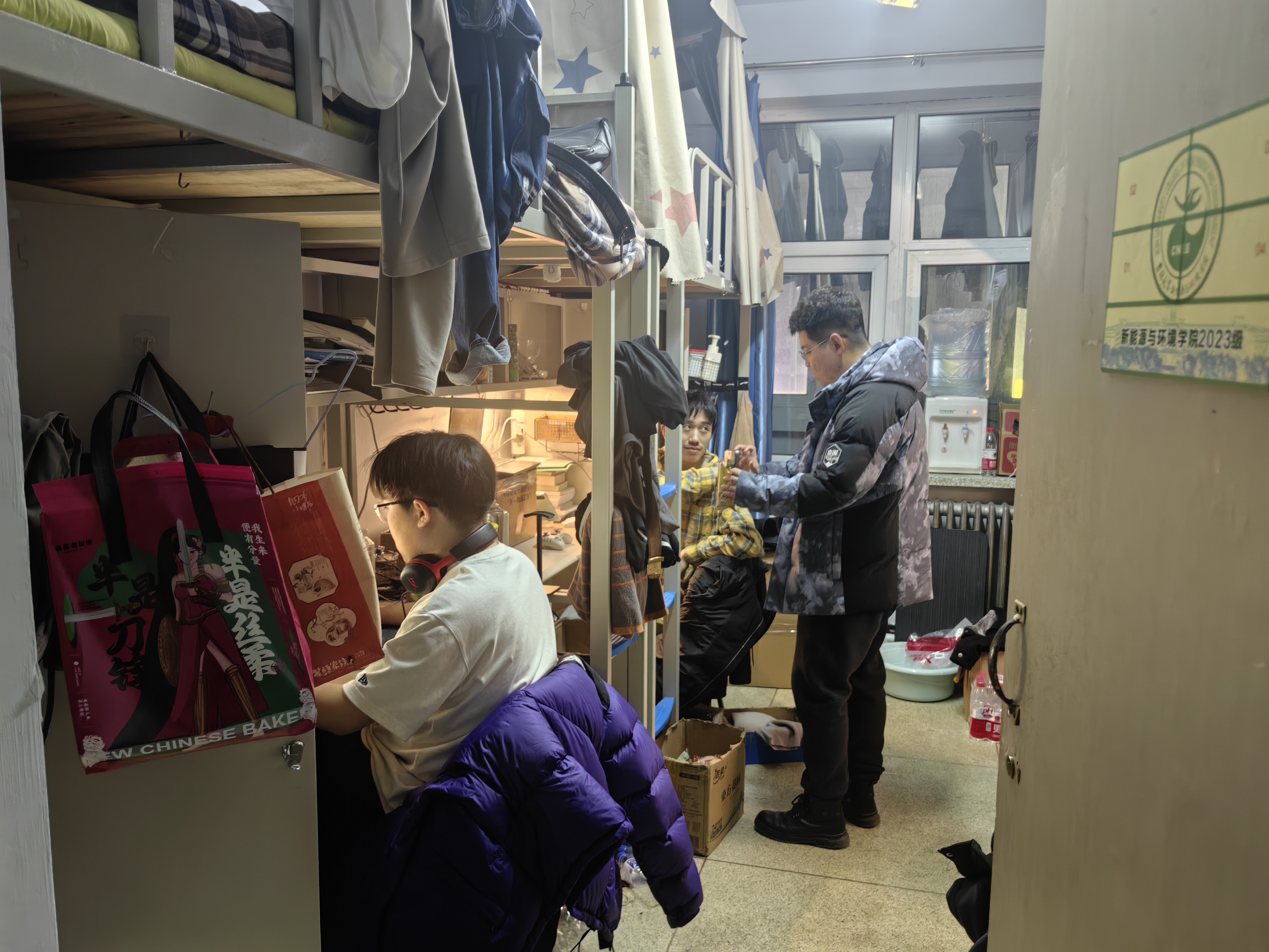 3月11日,2024级新生辅导员助理姜兆轩进入南苑一公寓,检查寝室卫生,了解学生学习生活动态,同时询问近期部分转专业学生的考试情况。