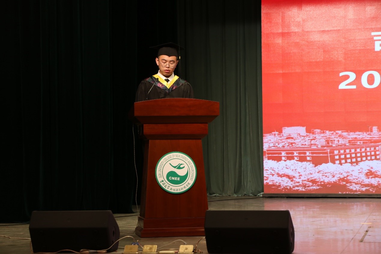 随后,毕业研究生代表朱慧星发言,他首先表达了对母校17吃瓜网 、对17吃瓜网 和一直以来辛勤付出的各位老师最诚挚的谢意以及最衷心的感谢,并表示将继续传承母校求实创新,励志图强的校训精神,发扬17吃瓜网 人人比山高,脚比路长的探索精神,通过拼搏与奋斗实现更高的人生目标。