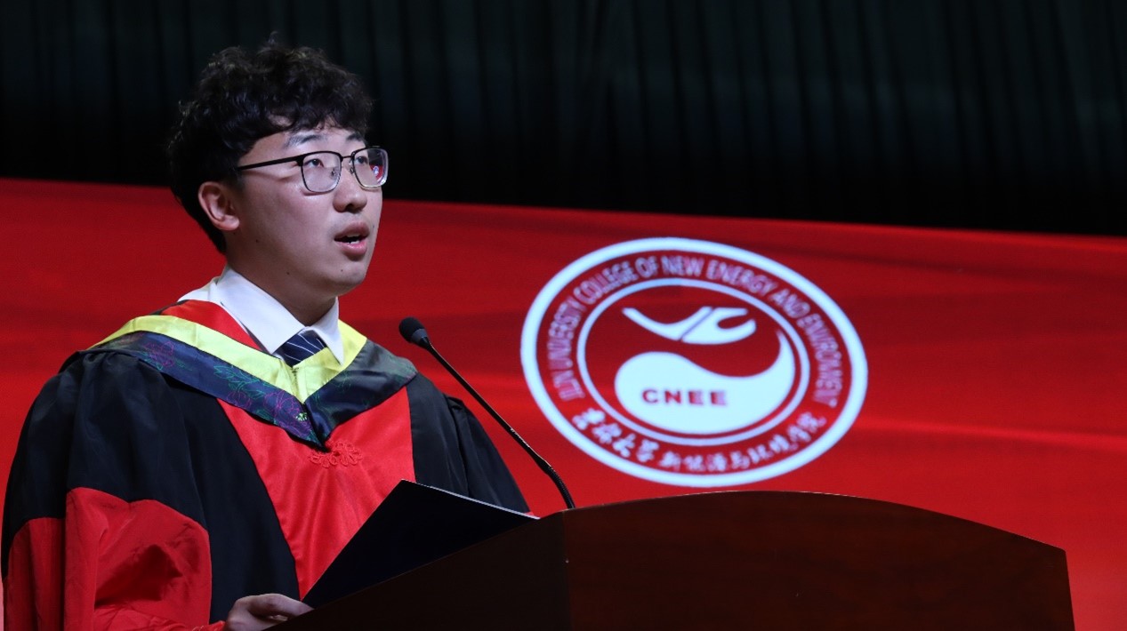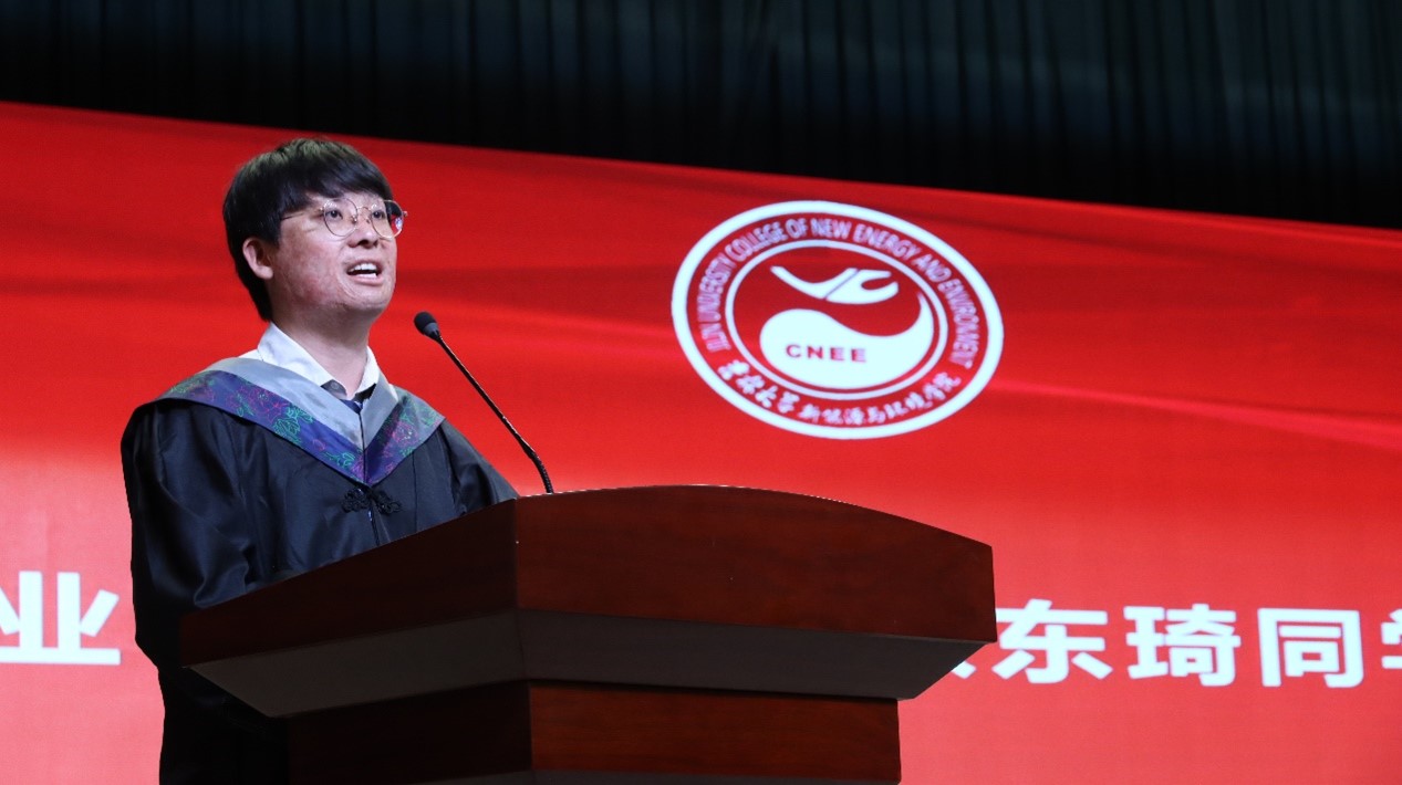 博士毕业生潘紫东和本科毕业生张东琦分别作为毕业生代表发言,他们分享了在校的成长历程,祝福毕业生在未来的不懈奋斗中再创佳绩。环境工程系主任张大奕教授致辞,张老师鼓励毕业生作为环境领域未来的从业者、开拓者和领导者,承担起对环境和社会的责任,展现出积极进取、创新开拓的精神,成为奋发有为的时代新人。林岚作为优秀校友代表,回顾了自己在校期间的难忘时光,分享了工作中建功立业的际遇,激励毕业生要不忘初心,行稳致远,心怀家国。院长许天福在最后的致辞中表示,希望同学们要有信心、定力和决心,做走在新时代前列的奋进者、开拓者、奉献者;希望同学们厚植家国情怀,在国之大者中成就小我;希望同学们保持一份热爱,怀揣梦想,笃定前行。