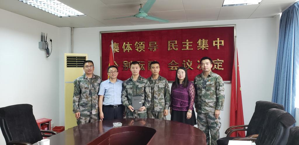 党委书记汪祥松率辅导员孟婧莹老师赴东莞樟木头和山东潍坊某部队,走访慰问两名学生,与学生及其指导员展开了座谈会并送去了慰问品。