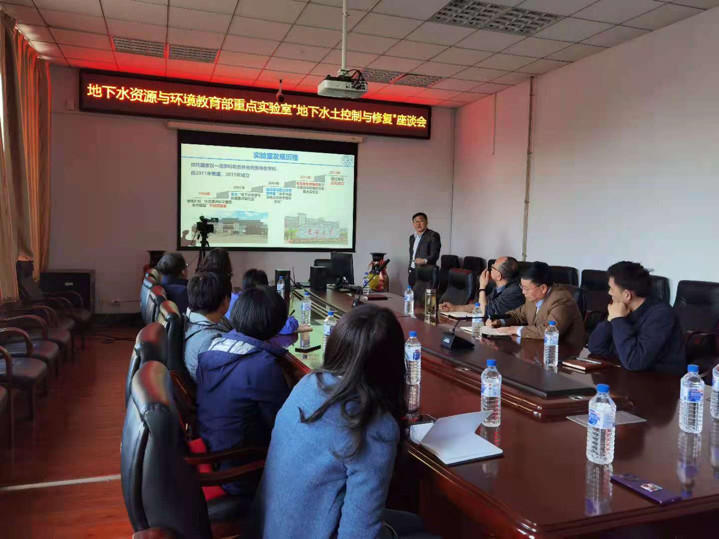 接下来的地下水土污染形成控制与修复学者座谈会围绕地下水土污染形成控制与修复方向的规划和建设进行学术研讨。许天福主任做了教育部重点实验室的情况介绍,赵勇胜教授就“地下水土污染形成控制与修复”研究方向的现状与建设提出了一些思考和建议,学科相关教师积极讨论关于学科发展方向的建设设想。许天福主任做出了总结发言,未来地下水资源与环境教育部重点实验室将发挥作为组织高水平应用基础研究、汇聚优秀人才的“基地和平台”的作用,集思广益,在发展中找不足,齐心建设高水平的教育部重点实验室。