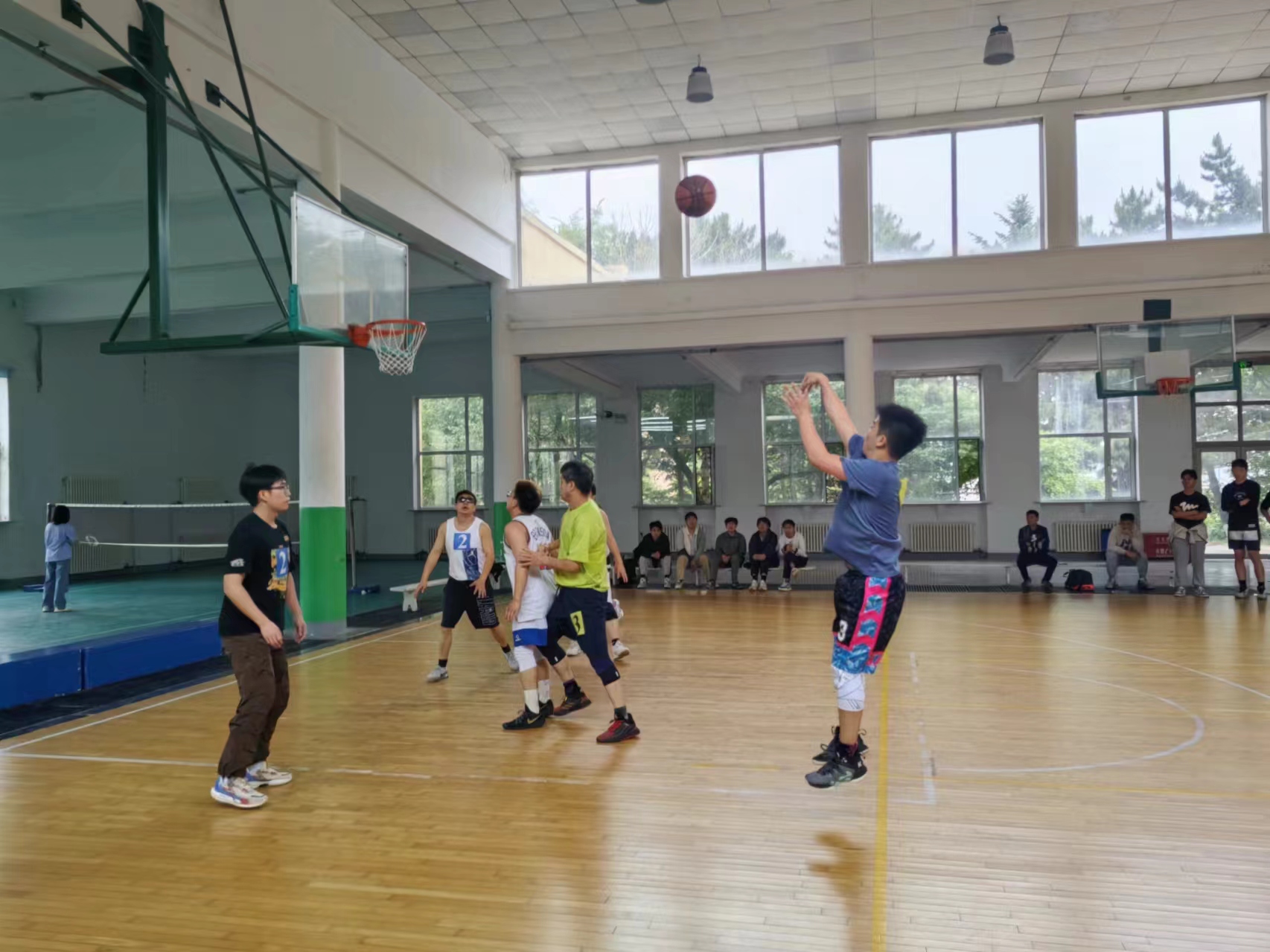在朝阳校区体育馆开展“导学杯”篮球比赛。此次比赛由导师和研究生共同组成参赛队伍,经过三轮激烈的对抗,最终决出了冠军队伍。比赛吸引了众多师生前来观看,现场气氛热烈,欢呼声和加油声此起彼伏。球场上,大家挥洒汗水,积极参与,展示了高超的篮球技巧和团队合作精神。