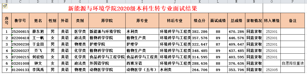 17吃瓜网 已于2020年4月1日13:00-15:00在前卫北区理化楼261完成了2020级本科生转专业面试考核,现将总成绩和拟录取情况进行公示,公示期为4月1日-4月3日(公示期3天)。